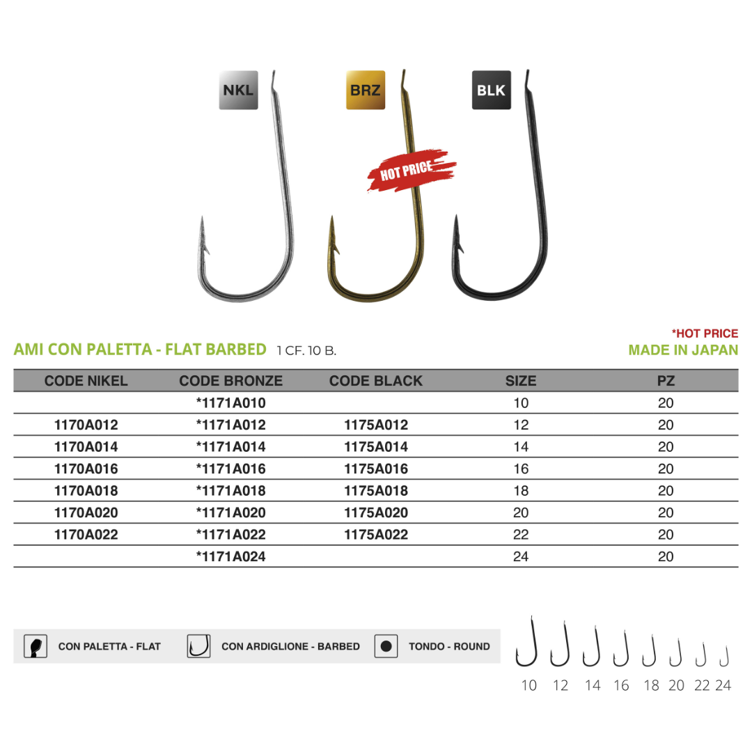 ACQUA DOLCE: Serie di ami a filo tondo, gambo medio, punta lunga, dalla forma che ormai non può mancare nella cassettiera di un pescatore, ideale per l’innesco di qualsiasi esca anche le più delicate come il ver de vase, grazie al filo robusto non teme l’incontro con grosse prede e induce una forte sicurezza nel pescatore che lo usa. MARE: La versione nera 1175 ha uno speciale trattamento antisalsedine che lo rende perfetto per l’utilizzo in mare. Le misure grandi vengono utilizzate nel surfcasting agonistico per catturare i pesci di galla, mentre nelle misure piccole è molto utilizzato nella pesca con la bolognese.