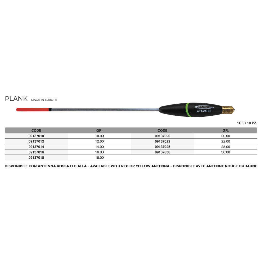 Galleggiante all’inglese con zavorra regolabile, l’asta cava in tublex è riempita con un materiale espanso per aumentarne la robustezza e le performance in volo. L’antenna cava del 4,5 forma un corpo unico con l’asta.
