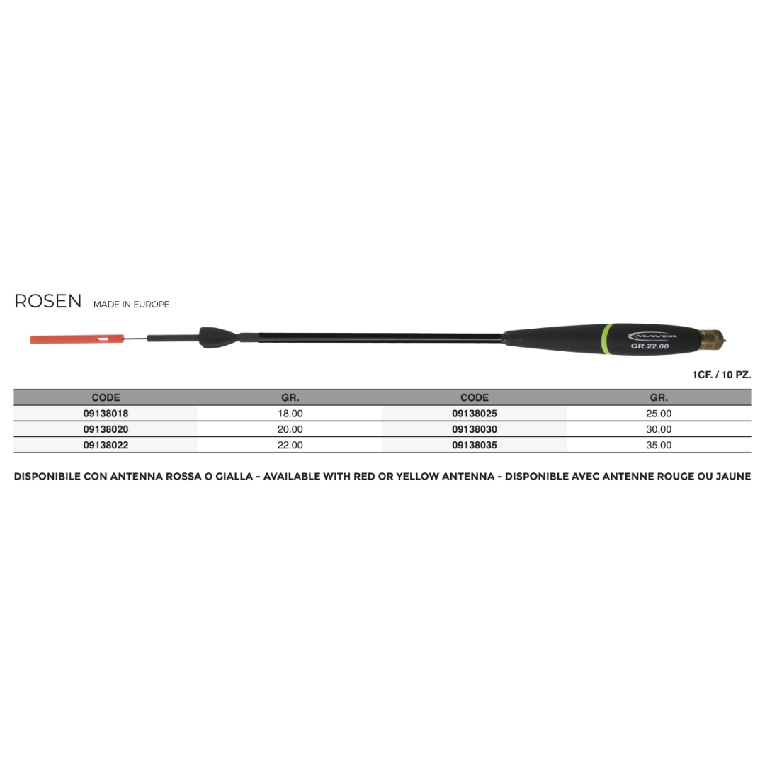 Galleggiante inglese adatto per pescare a lunga distanza, il bulbo affusolato risulta molto aereodinamico, alette e fischione garantiscono precisione nel lancio, visibilità e sensibilità.
