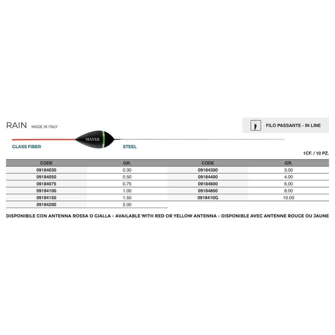 Tipico galleggiante per pescate difficili, corpo a forma di goccia allungata, foro passante, deriva in acciaio per una estrema stabilità ed antenna in fibra di vetro per avvertire anche la più minima tocca, sia in affondata che in starata, galleggiante ideale per canali e/o laghi con acqua ferma o poco mossa alla ricerca di pesci sospettosi come breme e grossi carassi.