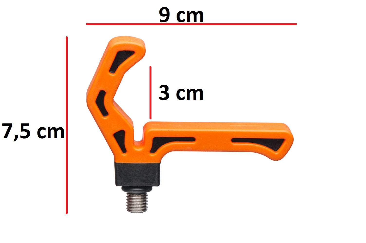High quality compact front rod rest for method/feeder fishing, featuring an optimised eccentric shape for positioning the rod perpendicular to the casting direction. It features a SoftTouch coated surface that protects the rod finish from scratches, along with a prominent notch for the line. Its construction is also suitable for carp fishing and for fishing for large fish with method rigs. The rod rest holds the rod securely, even during very sharp strikes. It features a high quality brass thread, compatible with all standard bank sticks, rests and arms.