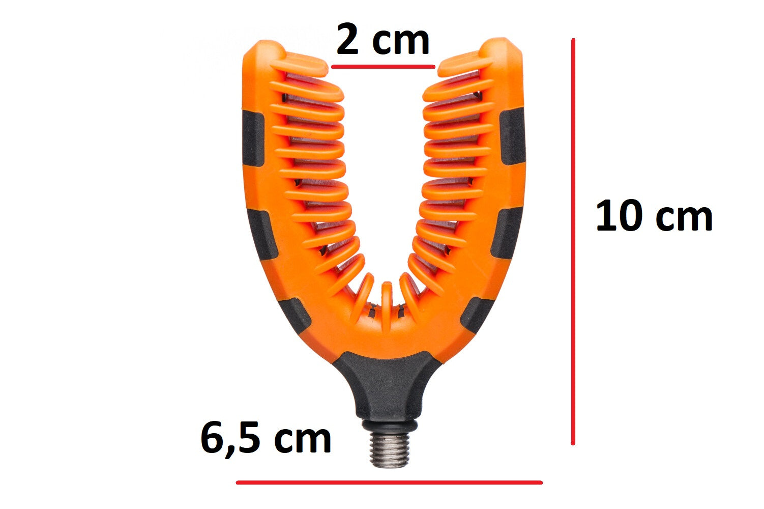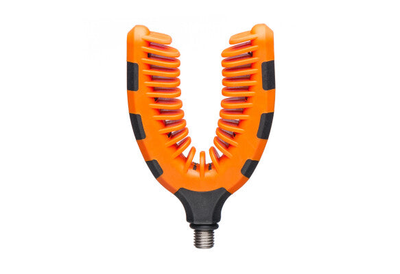 High quality compact rear rod rest for method/feeder fishing. It features a SoftTouch coated surface that protects the rod grip from damage. The soft AntiVibe ridges reduce the transmission of vibrations caused by movement on the chair or seat to the rod, preventing false bites and tip shaking. In addition, the rest easily adapts to various grip diameters. It features a high quality brass thread, compatible with all standard bank sticks, supports and arms.