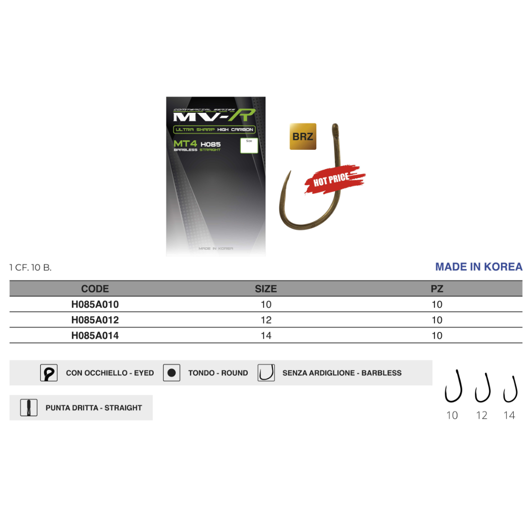 Amo tipico per la pesca in Carpodromo, l’assenza di ardiglione garantisce la massima sportività e una facile slamatura della preda. L’occhiello ci permette di utilizzare anche fili molto grossi rispetto alla misura dell’amo. Amo di colore brunito, ideale per l’utilizzo del pellet o di bigattini morti.