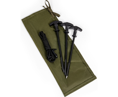 Niet gebruiken tijdens onweersbuien, onder bomen of tijdens onweersbuien vanwege het risico op instorting, vallend puin of bliksem. Zet de tent altijd vast met stormlijnen en alle ankerpunten. Vermijd het gebruik van open vuur, kachels of het bewaren van brandbare materialen om brand te voorkomen. Reinig alleen met producten die speciaal zijn ontworpen voor ademende tenten of bivvy's met PVC-deuren. Breng jaarlijks een ademende impregneerspray aan om de duurzaamheid te behouden en veroudering van het materiaal te voorkomen. Blijf nooit in een bivvy tijdens extreme weersomstandigheden of als deze fysieke schade heeft opgelopen.