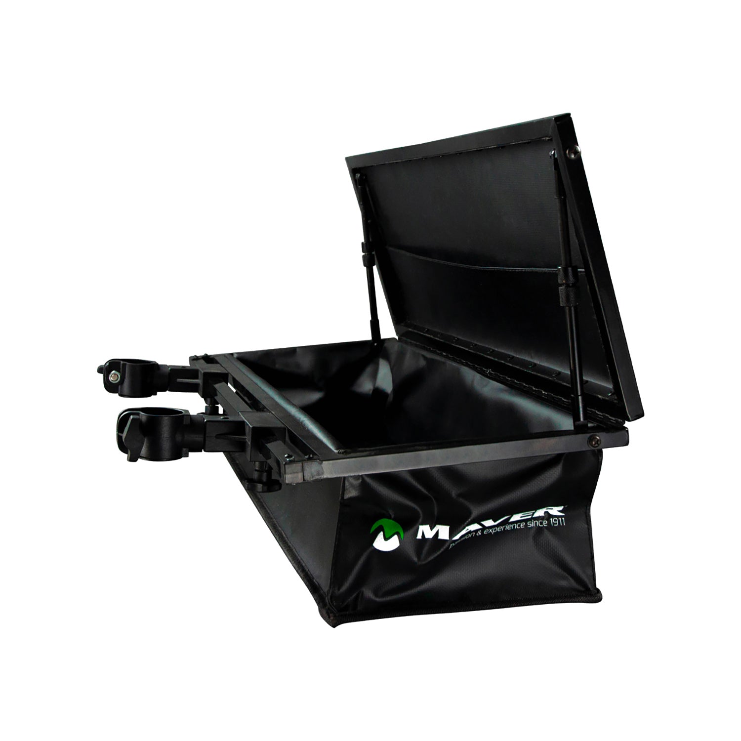 Piatto piccolo 74x25cm con coperchio richiudibile, il coperchio funge da riparo sia dalla pioggia che dal sole, ideale per alloggiare esche ed accessori utili in azione di pesca.