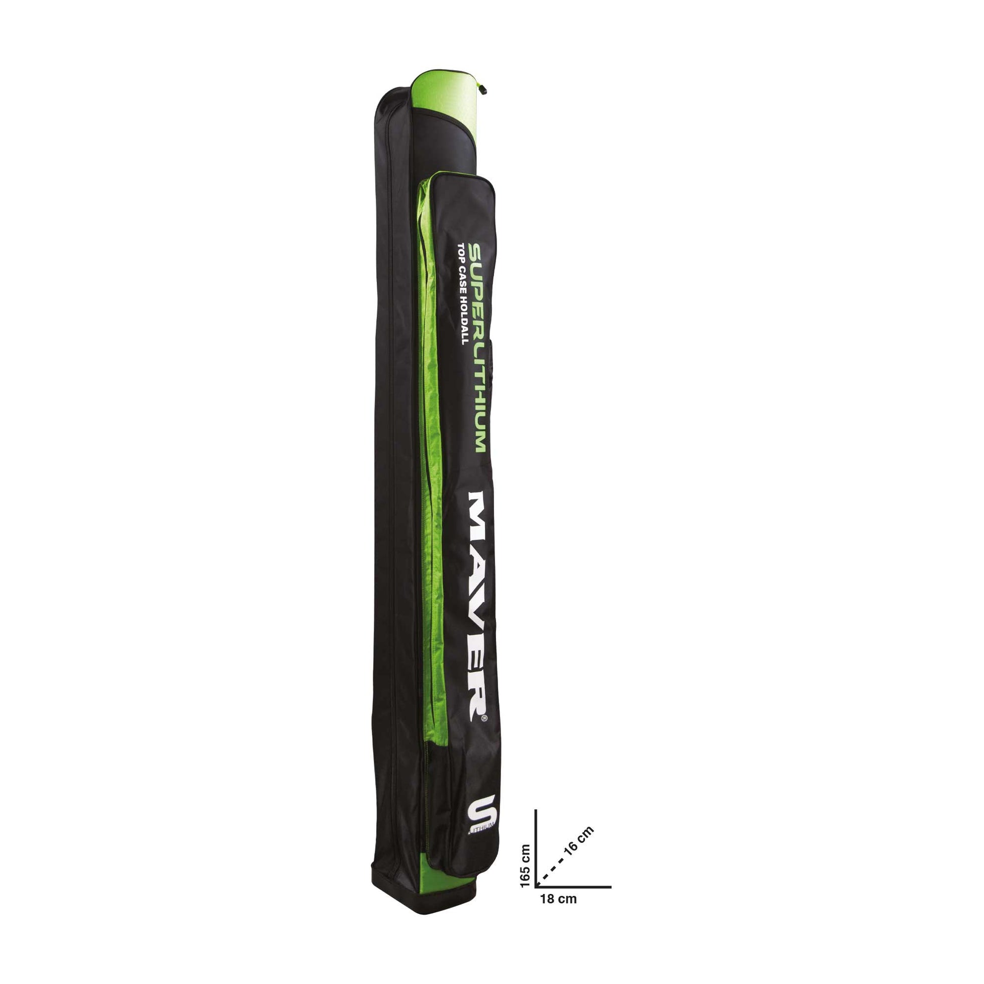 Questo fodero è progettato per contenere canne e kit di ingombro massimo pari a 1.65 metri, ha uno scomparto lungo più uno corto per riporre picchetti e altro materiale metallico in modo che non sia a contatto con le canne. Il fondo rigido antisfondamento protegge la parte che normalmente si usura di più in un fodero. Dotato di bretella super imbottita della serie deluxe per il trasporto in verticale e maniglia per il trasporto in orizzontale.