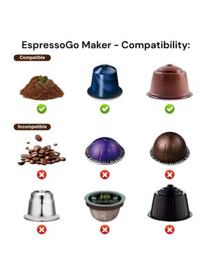 La macchina da caffè è compatibile con capsule Nespresso® e Dolce Gusto® e soddisfa anche chi preferisce preparare il caffè con caffè macinato fresco. Offre due modalità di funzionamento: estrazione dell'espresso da acqua già calda o riscaldamento dell'acqua fredda fino alla temperatura ideale di 94 °C in 4-6 minuti.